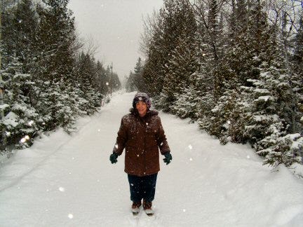 I considered the problems I might run into if I did that. Snow—maybe mountains of snow—would be one. Icy roads would be another. I would need to find someone to plow me out whenever the driveway and walkway needed it. (Done) I would need to make sure I had provisions enough to last me if I get snowed in at any point. (Can do) I would need to have enough firewood to keep the woodstove going in case of power outages. (I think I have enough) And I would have to think about being alone much of the time, when winter darkness comes and the world up here grows quiet.